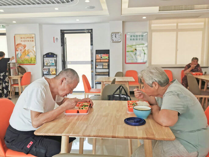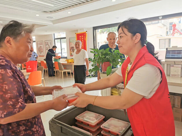 近日,民政部、住建部等11个部门联合发布《积极发展老年助餐服务行动方案》,标志着老年助餐服务将成为重要的民生工程,为支持居家社区养老、增进老年人福祉提供重要举措。老年助餐服务不仅能解决老年人的用餐问题,提供营养丰富、价格合理的餐食,满足老年人的基本生活需求,更是支持居家社区养老、增进老年人福祉的重要举措。作为河海全龄友好空间的一大服务特色亮点,站点办理助餐卡老人已达二百余人,目前日均用餐70份左右,5元的自费标准就可以享受到1大荤、1小荤、2素菜、1饭1汤的营养餐食,深受站点老人的喜爱。