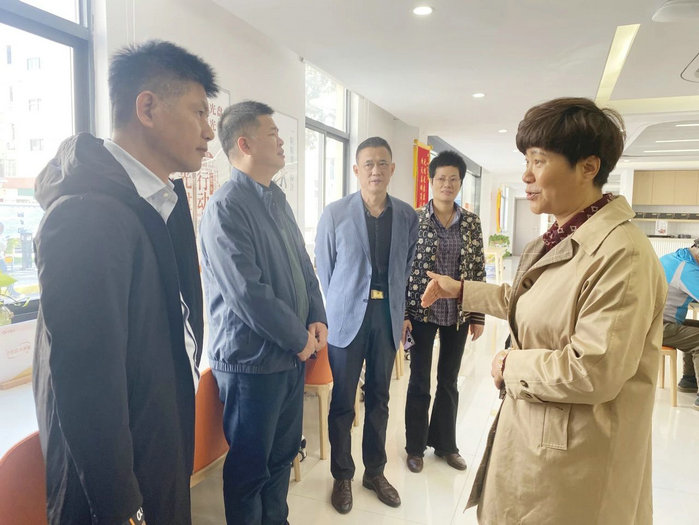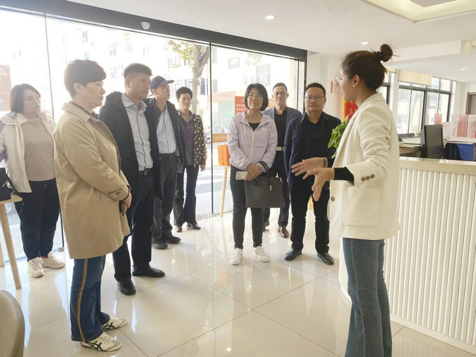 调研组一行又到达常州万家安护理站,对于全龄友好空间内护理站的嵌入式服务,董事长王秀向包会长和王海副局长一行做了全面介绍。结合医疗护理服务增能的大方向的指引,江苏枝秀深刻践行医+养融合的发展方向,2021年率先在我市成功建设万家安护理站——是专注于社区居家生活照料、医康养护理,建立健康档案等服务的专业医疗机构。这支由护师、护士、康复理疗师、治疗师和其他护理人员组成的专业护理团队,为全龄居民提供不同个体差异的生活照料、专业护理及健康咨询等服务满足不同年龄段人群的需求。