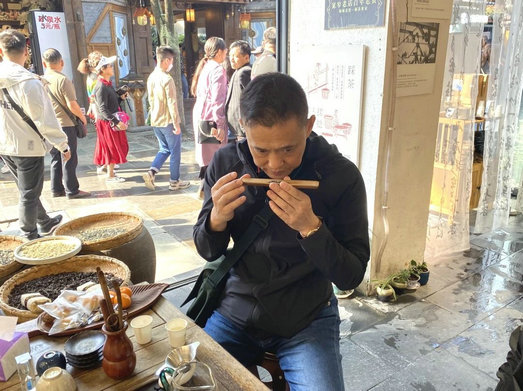 为契合棠果文旅现阶段发展着重点及规划方向,棠果文旅将成都宽窄巷子作为主要学习项目。宽窄巷子是成都市内的一个著名景点,是一个融合了传统文化、历史风貌和现代商业的区域。宽巷子和窄巷子两个古老的街区充满了浓厚的历史和文化氛围,传统建筑和古朴的街巷展示了成都的传统风貌,是一个能够提供丰富古街文化、美食和购物体验的地方,同时可以感受到成都的悠久历史和独特魅力。棠果文旅团队于“宽窄老店百年老贾”草木间,学习了解了雅安市名山区非物质文化遗产项目蒙山茶产痛制作技艺,并且从专业角度品鉴本地特色茶叶的同时与店主沟通交流的川苏两地茶品特色,受益匪浅。随后,棠果团队对宽窄巷子内的特色茶座项目进行了学习参观。下午坐在院里一边喝茶一边看地方特色表演,阳光宜人的下午与青砖灰瓦并肩,一边喝茶一边跟与三两好友闲聊,故事赋予建筑温暖的灵魂。萦绕着是唇齿间的幸福,也是美妙的成都滋味。