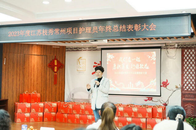 为更好地总结2023年,奔赴崭新的2024年,江苏枝秀常州项目组织召开了2023年度护理员年终总结表彰大会,为常州居家、长护、机构服务团队,送去节日的慰问和祝福!