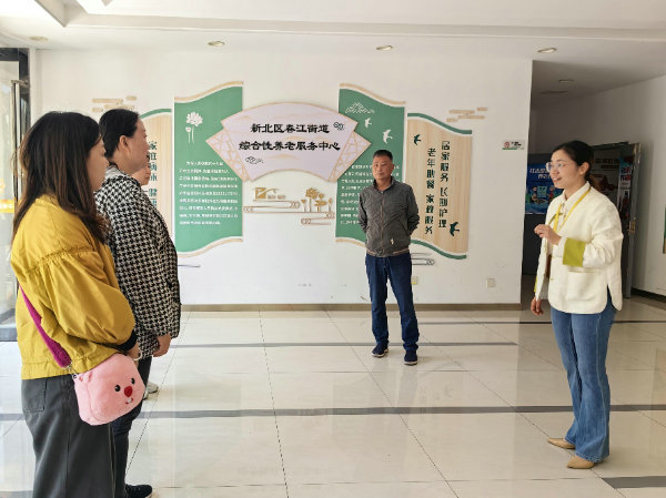 2024年4月24日,徐州市民政局养老服务处处长尹学乐携徐州市泉山区永安街道、火花街道、七里沟街道办事处主任等一行6人,莅临春江综合性养老服务中心、三井街道万家安睦邻中心考察调研,江苏枝秀徐州分公司负责人、市场部总监吴旭含全程陪同参观讲解。