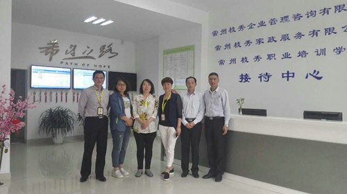 2016年5月17日,吕梁市人社局就业科张小平科长、吕梁市护理护工培训中心办公室主任李煜、吕梁市临县就业服务局长张志华等一行四人莅临江苏枝秀进行参观指导。江苏枝秀董事长王秀、总经理吴逸新、总经理助理王芳等陪同他们参观了枝秀门店建设情况,双方就家庭服务业的发展及人员培训进行了交流。