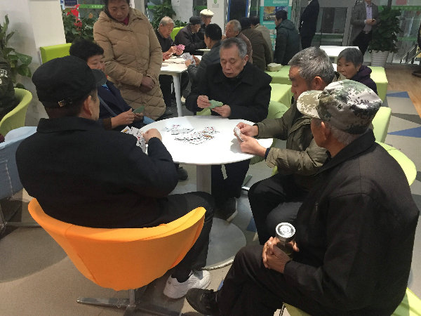 ▶ 社区老人们正在休闲娱乐,打扑克、打乒乓
