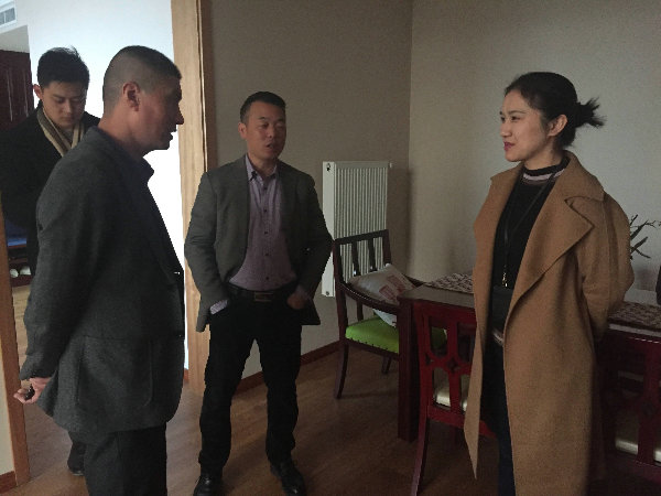 ▶ 公寓负责人正在为枝秀的领导们介绍公寓情况,并带大家参观了公寓内现住长者们的生活寝室。
