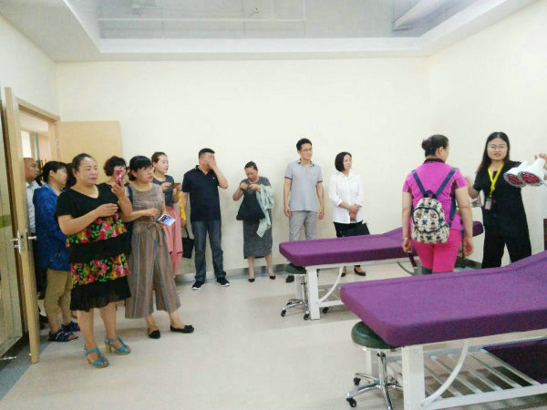 康养部的通透与明亮,宽敞与雅致的结合,让湖滨街道办事处的社区书记和主任们瞬间震惊,温馨的色彩让大家仿佛身处“婴儿房”内,舒适的坐椅让大家在感叹着物品价值不菲的同时,深深的感悟着再贵的物与价也代替不了父母曾经的辛苦与付出;全自动天轨洗浴的设置,在现场又刮起一阵“十二级台风”,在试乘和观摩了天轨从房间床位上托起老人自动运营至助浴中心后,大家都为它的小而精且专感到惊喜。有这样一个完全从如何真正的为老服务角度去思考与建设并实际投放运营的服务体系,落地于泉山、服务于湖滨街道办事处,湖滨老年朋友们的福音真的来啦。