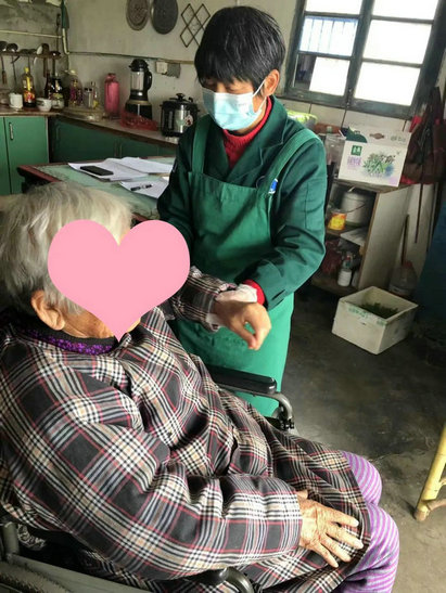 ▲照护员为服务对象擦拭清洁