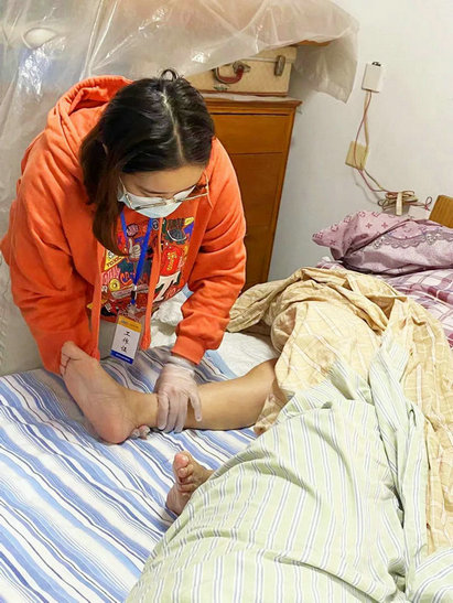 “阿婆,您叫什么名字?您现在住在哪里?您平时能自己吃饭吗?您能自己翻下身子吗?……”3月7日上午8时,常州市钟楼区御源林城里,86岁的刘阿婆躺在床上,常州万家安护理站的评估专家小组正为阿婆做失能检查、针对阿婆的居家生活、认知、感知、沟通等方面的能力进行详细的评估打分。