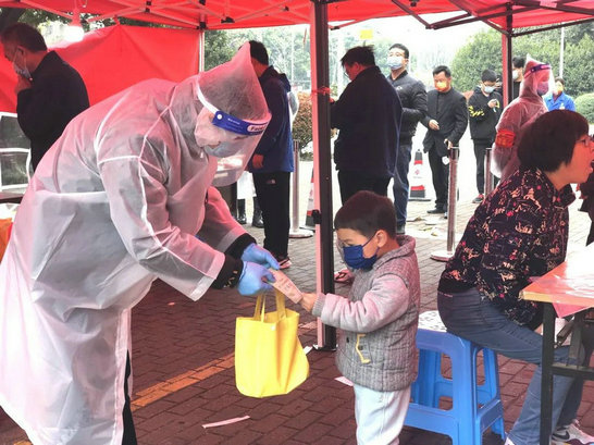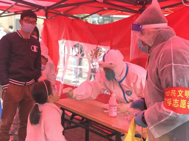 江苏枝秀总经理吴逸新第一时间响应街道党工委号召,迅速行动,在骤然降温降雨的户外,协助指导居民扫码、登记和测温,核对及录入身份信息,提醒大家保持安全距离,维持核酸检测现场秩序。
