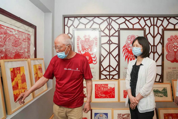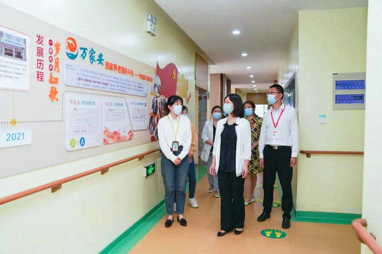 王芳首先来到三井街道燕兴社区,参观调研了殷明欣刻纸工作室和万家安睦邻中心。殷明欣刻纸工作室由“常州好人”、退休干部殷明欣创办,他以传承刻纸非遗文化为己任,专注刻纸义务教学20多年。了解到殷老不仅将刻纸打造为街道精品课程,还通过义卖3000余副作品募集资金援助贫困学子,王芳盛赞他手艺精湛、初心不改,是老干部发挥作用的优秀典型。在万家安睦邻中心,王芳调研了其涵盖的助餐、助医、理发、按摩、戏曲欣赏、棋牌娱乐、老年教育、心理慰藉等服务项目,认为这是一个集娱乐、休闲、学习、康复、保健等“一体化、一站式”多功能的综合性照料中心,是引入社会力量助老的先进范本。