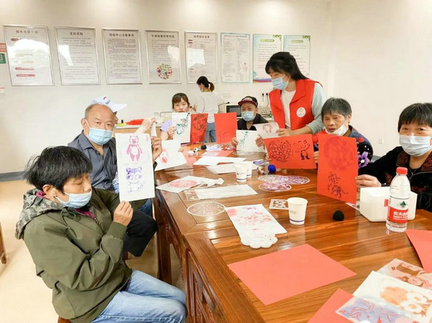 每周场馆开展丰富的活动,充实了他们的业余生活。观影、下棋、舞蹈、拓画、插花、健康知识讲座、品尝夏日甜品、做游戏、锻炼、指导康复训练、为特殊服务对象提供上门爱心理发……