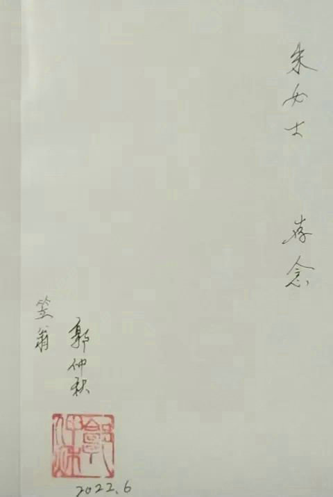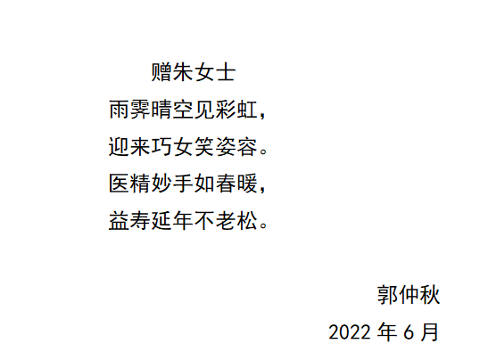 还有一位郭仲秋老人,为了感谢朱彩红对他老伴的悉心照护,赠送了自己出版的书籍并发自内心的赠诗一首。