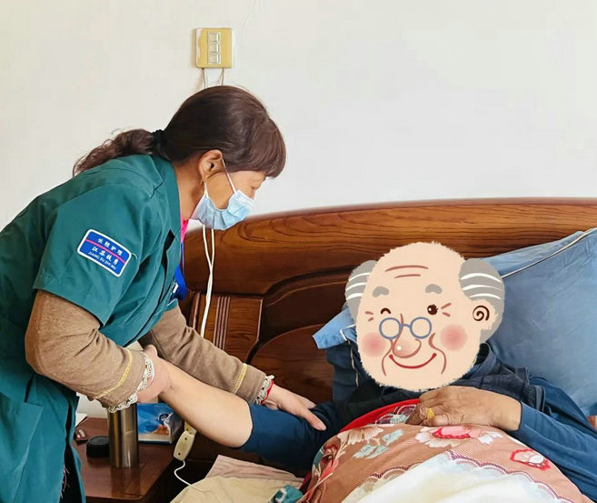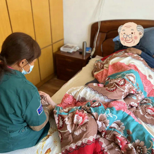 孝都朱奶奶家,也是照护员杨建英服务的。据杨建英所说:“第一次上门还没开始服务,她家跟我说以后别来了,我跟她家属表示:‘让我服务一次再看看您需不需要。’”服务完家属就说:‘以后就你来吧,你比我照护的专业多了!’”他们家一开始很排斥别人上门服务,觉得别人照料不会很上心,自己家里人照料的是最好的,来了反而增加负担,但是现在特别喜欢、依赖我。”说到这,照护员脸上满满的骄傲。家属说:“自己家是开店的需要照看店面,跟小杨约定好每次服务早上6点就要到我家。天气越来越冷,小杨还是一如既往6点前就到。说实在不是所有人都能干的下来的。我们怎么说她就怎么做,约好的时间从来不会晚,真的对她特别满意。”