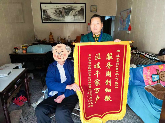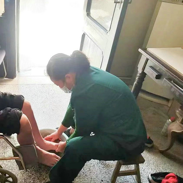 照护员戴传香,培训上岗期间一直很用心地学习各项服务操作,技能接受的很快,上手迅速,动手能力强。她的服务对象钟楼区杨叔叔,是这么评价她的:“小戴特别勤快,实实在在地服务两个小时,一直帮着做很多事,做的也是十分到位,每件事都能干得仅仅有条,特别能干。”听到杨叔叔的评价,戴传香笑着说:“我这个人就是这个性子,闲不下来。服务能让他们觉得满意,那对我也是一种认可。” 杨叔叔由于中风导致的偏瘫,天气冷了之后肌张力特别高,“我手臂到了这个天气,就特别僵硬,她来不仅会给我泡泡脚,按按摩,还会教我的孩子,怎么去让我的手臂放松一些,每次她服务完我都感觉身体很放松,很舒服,真的特别感谢公司安排她过来给我服务,真的是一种缘分。”