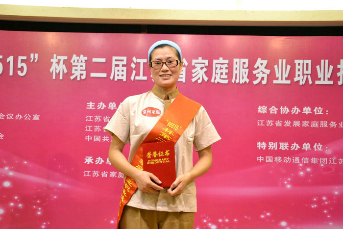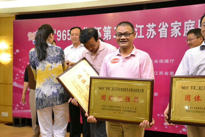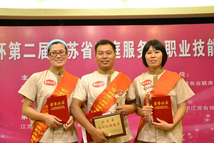 “96515”杯第二届江苏省家庭服务业职业技能大赛于2012年8月16-17日进行,我公司有三名员工代表常州代表队参加,荣获个人第二名、第四名,团体第二名的佳绩。并荣获常州市巾帼建功标兵、常州市技术能手的光荣称号。