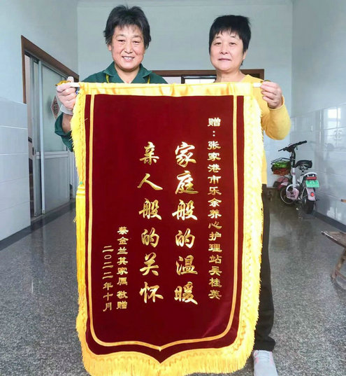 家属们都说多亏了吴桂英的照护,她们省心了很多,也能安心地工作了。感谢枝秀养心护理站派出吴桂英这样的照护员来为我们服务,真诚感谢政府有这样一项惠民政策!为了表达以上感激之情,家属们送来了鲜艳的锦旗,分别写着:“认真负责、尽心尽责”,“家庭般的温暖、亲人般的关怀”,“不怕苦、热情服务;不怕累,任劳任怨”,来表达对长护险服务的认可与感谢,三面锦旗是吴桂英的荣誉,更是对她工作的认可及高度赞扬。