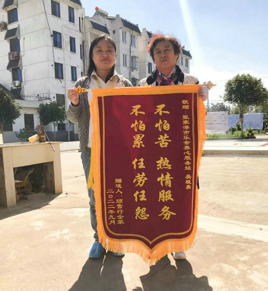 每次吴桂英服务时,都很耐心地帮助老人翻身、喂食、更换尿不湿、擦身、肢体锻炼,和老人们聊家常,听取老人的意见和心声,耐心开导老人,向老人讲述开心的事情,老人们都觉得吴桂英服务的两小时是那么的短暂。