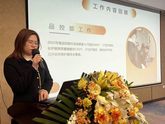 董事长王秀:回顾2022,江苏枝秀取得了许多傲人的成绩,如各分公司长期护理险服务、居家服务等一系列养老、助老服务的开展、社工项目和社区管理的深度合作以及棠果文旅多元化业务的拓展等。不仅如此,“枝秀人”共克时艰,经历了2022年到2023年这一让人“难忘”的历史性跨越,为2022年的工作画上了圆满的句号。因此,作为市政协委员的董事长引用了在参加市两会时,市委书记陈金虎同志的发言并和大家共勉“2023年要放下过去,用迎接挑战的归零心态,用锐意进取的拼搏韧劲,以功成不必在我的精神境界和功成必定有我的历史担当,整装再出发,丰富新征程,向新的目标迈进。”