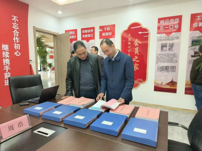 调研组还参观了民建贾汪区支部“民建会员之家”,该“民建会员之家”依托会员企业江苏展通建设有限公司设立,面积为70平方米,配备会议桌椅,电脑、投影、旋转书架等设施,以民建会章会史,民建中央、省、市组织简介,支部工作剪影等三个板块以图文并茂的方式进行了精心布展。