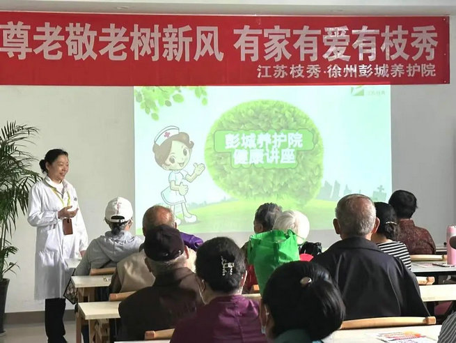 随着人民群众多层次多样化健康需求持续快速增长,为满足老年人多层次健康需求,普及老年人健康知识,倡导健康生活理念,增强老年人的身心健康。2023年5月12日,江苏枝秀·徐州彭城养护院开展了一场关于高血压的健康讲座,特邀院内护理部主任王若侠作为主讲,市场部张露作为副讲,为长者们讲解关于高血压的知识。现场近40名长者参与此次讲座。