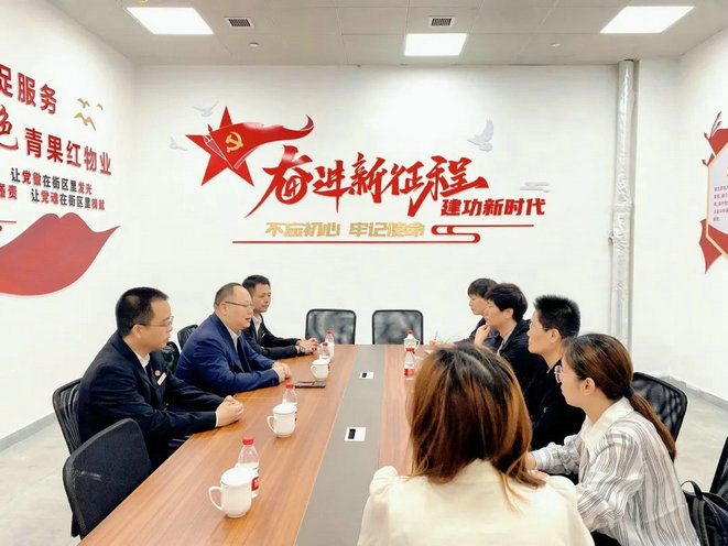 随后,江苏枝秀与晋陵物业及华怡明都酒店集团负责人----华怡明都集团公司副总裁刘为民、晋陵物业管理公司党支部书记、执行副总经理陆科春等领导进行了深入地交流。交流的过程中,首先聆听了华怡明都自1997年至今重要发展节点以及从酒店管理至连锁化、多元化发展过程,对集团布局物业、团餐项目和国企融合发展上有了更深了解,这对于以家政服务为起点,向养老产业及文化旅游行业发展的江苏枝秀可谓是“不谋而合”。随后,刘总及陆总对于标准化管理模式、城市服务社区化建设、业务延伸拓展等方面的介绍让江苏枝秀的管理团队收获满满,在相互交流过程中,双方在“城市社区服务”方面达成了共建意向,希望通过沟通和交流进一步发掘双方资源优势,形成项目合作和共建成果。