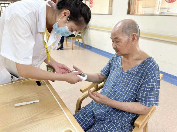从7月份起,葛医生每周三会定期到养护院进行健康巡诊,从“医疗、康复、养生、护理”四个方面全力以赴保障养护院长者的健康。每次巡诊,都要为老人们检查身体,量血压、测血糖,针对老人的身体状况提供专业的健康指导和治疗意见。同时,会把每次巡诊情况详细记录在案,为每一位长者建立完备的健康档案。通过健康巡诊活动的开展,一方面能够让老年人感受院内的关爱和照顾;另一方面能够及时发现老年人的健康问题,及时采取妥善措施,保障了入住长者的身心健康。