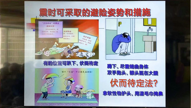 生命是珍贵的、是无价的。邵老师通过电视大屏展播幻灯片课件和图片、视频等,详细讲解地震灾害成因及避震避险方法等内容,并现场示范指导应急避震技巧,以互动参与的方式,让大家熟悉和掌握了应急自救的基本知识与技能。大家都聚精会神地边看、边听、边学,积极与老师交流互动,现场的学习气氛积极而热烈。