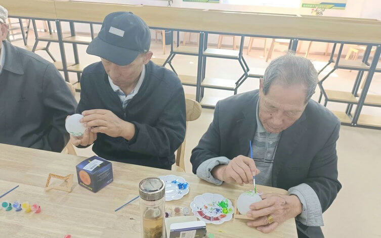 社工们精心策划了DIY手绘月球灯活动,富有创意和趣味性,让金村的老人们在亲身体验的乐趣的同时,还能以一种独特的方式把月亮带回家。活动现场,社工们准备了各种手绘工具和材料,包括画笔、颜料、画板等,以便让老人们尽情发挥自己的创意和想象力。在社工们的指导下,老人们开始一笔一绘地描绘出自己心中的月球形象
