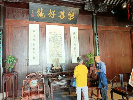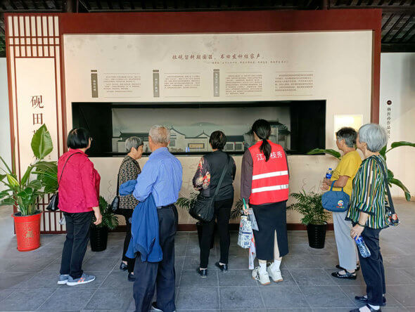 老人们先去参观了杨氏孝坊。他们欣赏了各种展品,了解了恬庄的发展历程,以及政府在其中的贡献和影响。其中顾伯伯说:“我很高兴能看到我们张家港的历史和文化被这么好地保存和展示,这让我感到自豪。”顾伯伯还表示,他希望能把自己的家风家训传承给下一代,让他们不忘本。