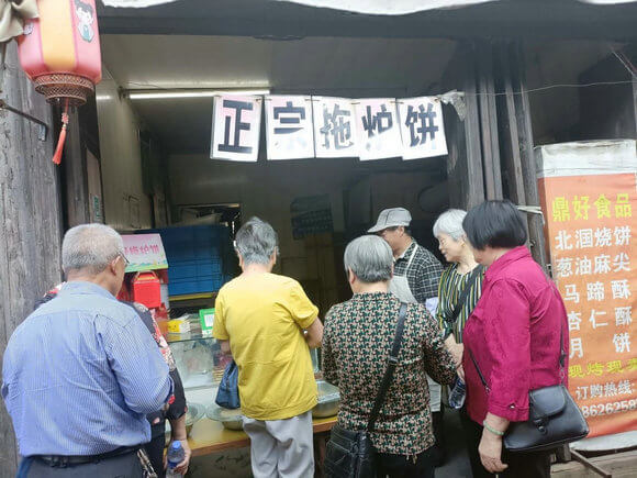 恬庄的非遗文化工作坊则让老人们现场观看了中国传统的手工艺和艺术,如打铁、造锅、制铲,老人们都叹为惊止,感叹着工匠精神,之后特意品尝了恬庄土特产拖炉饼。其中一位老人陈阿姨说:“我小时候住在恬庄,那里有很多手工艺人做各类的玩具,我经常跟着他们玩耍。今天我又重温了这种乐趣,感觉回到了童年。”陈阿姨还说,她愿意作为向导,带领更多的人去恬庄参观和学习。