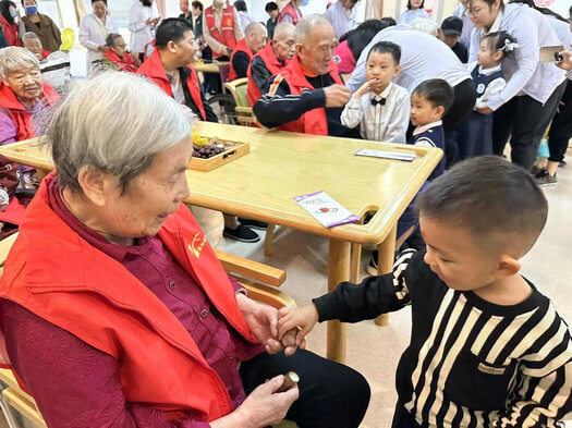 赵寿梅老人非常激动的说:“这些孩子们太可爱了,不仅为我们表演节目还给我们准备吃的东西,很感谢这群可爱的孩子们,也非常感谢社区的领导和养护院的工作人员为我们考虑的太周到了。”
