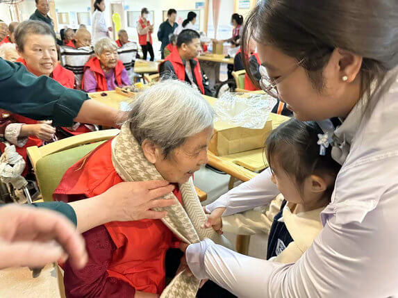 活动最后,在场老人和孩子们一起制作了茱萸香包,孩子们亲手把准备的围巾和水杯送给老人,并为老人戴上了“暖心”的围巾,有的孩子还主动拥抱了在院的老人并趴在老人耳边送上了祝福。整个活动温馨美满,气氛热烈,其乐融融,在场的老人心情舒畅,快乐的过了一个温馨祥和的节日。