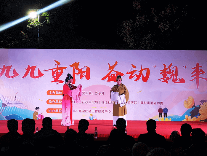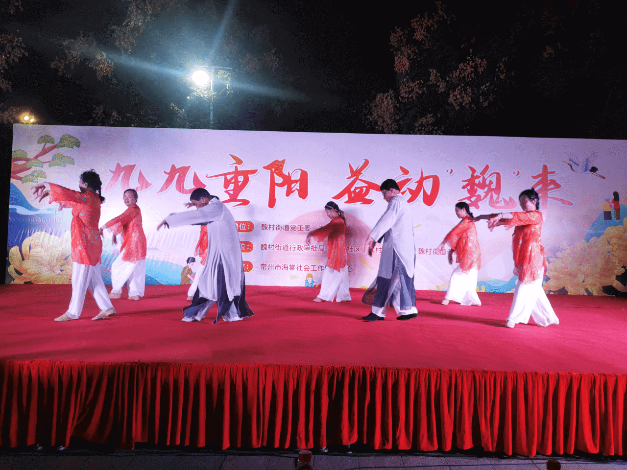 为弘扬中华民族尊老、爱老的传统美德,让老人们度过一个快乐、祥和的节日,值此重阳节来临之际,魏村街道在临江社区紫金广场举办了“九九重阳 益动魏来”主题晚会,数百名居民朋友相聚于此,共同欣赏这份真挚的精神文化节日大礼。本次活动由魏村街道行政审批局、临江社区、魏村街道侨联、魏村街道老龄委承办,常州市海棠社工协办。