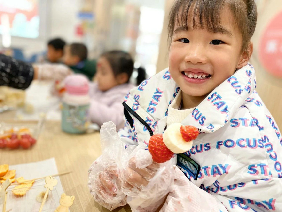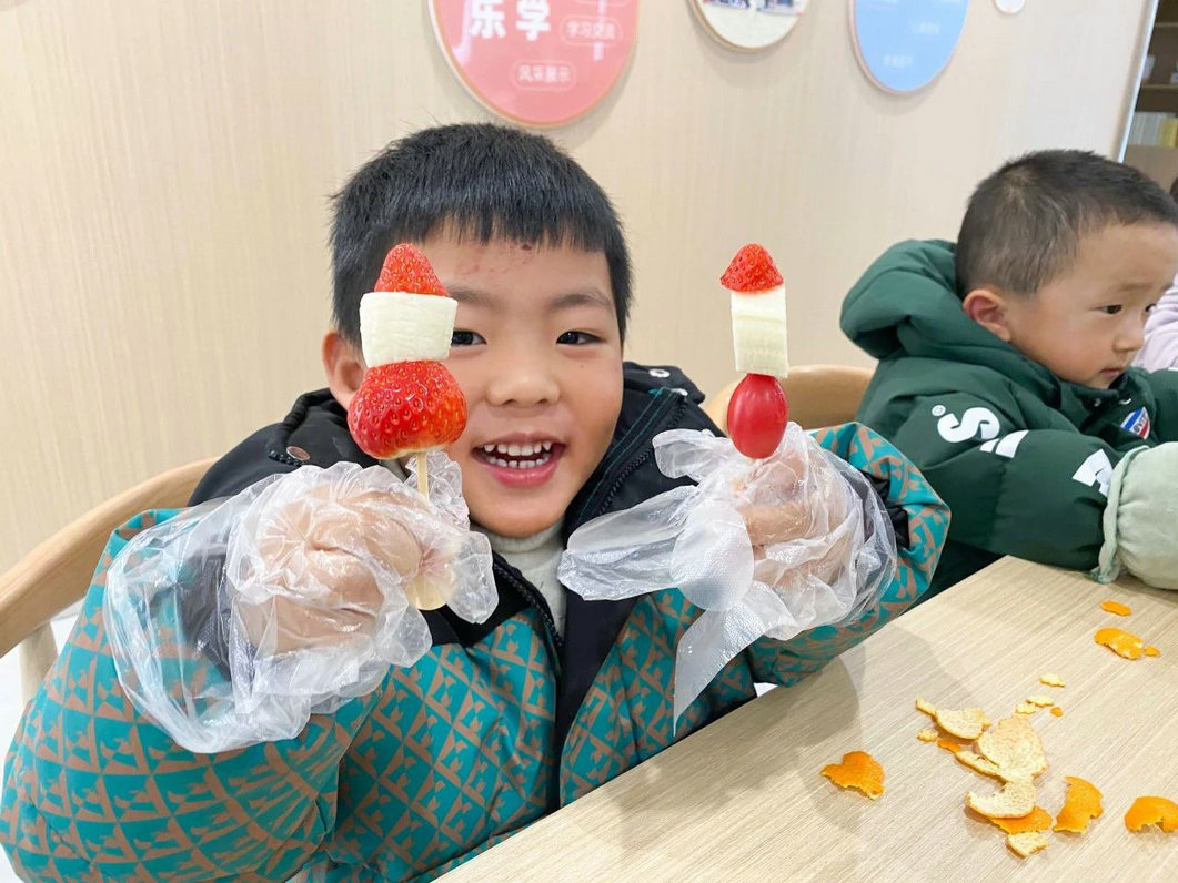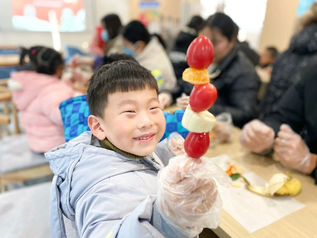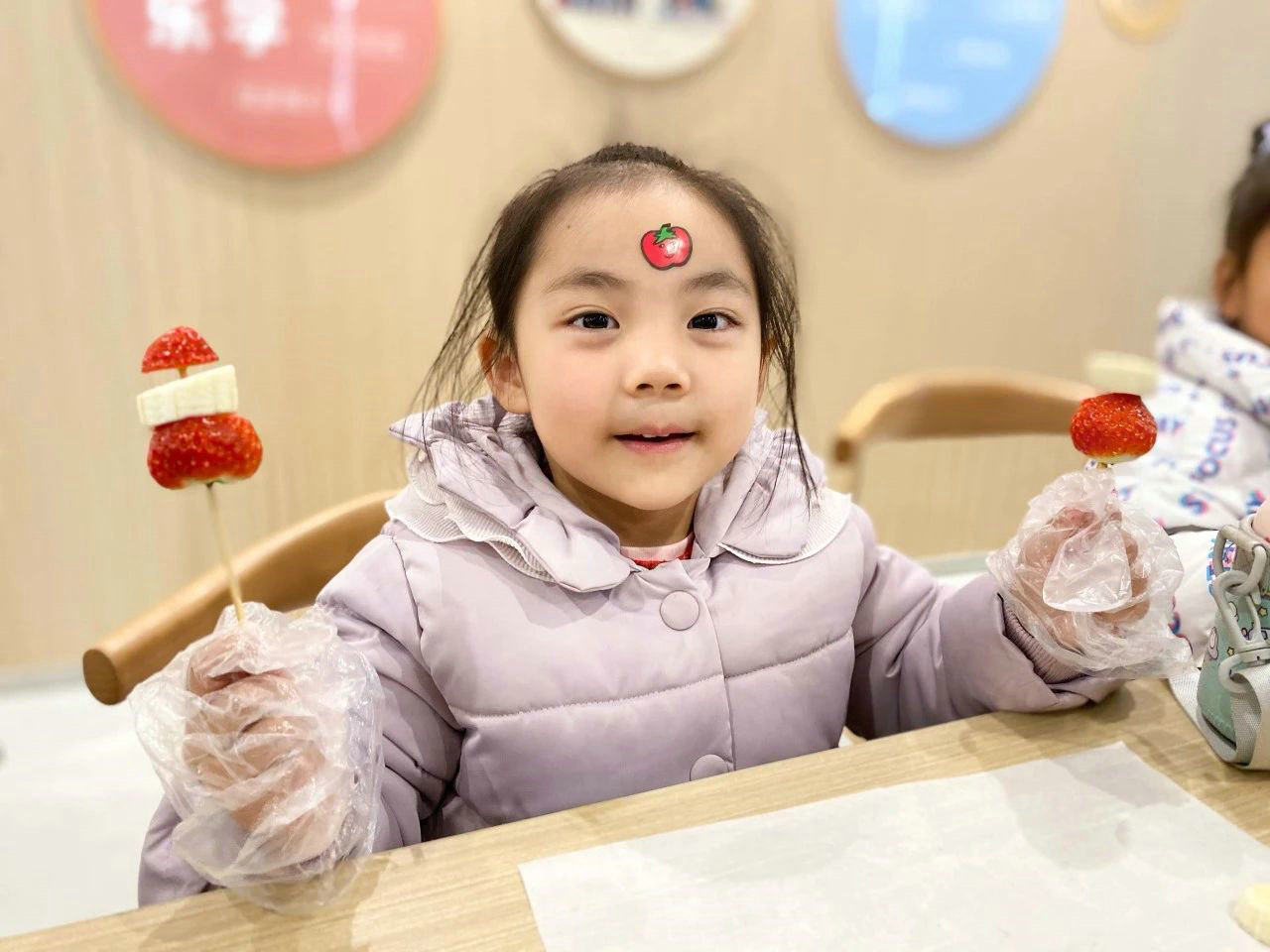 孩子们拿起竹签开始串起自己最爱的糖葫芦。水果串好后就要开始熬糖了,我们将白砂糖和水进行混合,用电锅将糖水大火煮开后,再用小火慢慢熬到糖水中有浓密的小泡泡开始裹糖衣……
