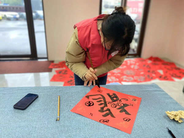 春联寄浓情,福字暖人心。此次活动现场赠送春联和吉祥的福字,不仅弘扬了我国传统的年俗文化,更让大家感受到书法艺术的魅力,在增添了传统文化浓厚“年味”的同时,也让社区群众感受到了江湾社区带来的温暖与关怀。