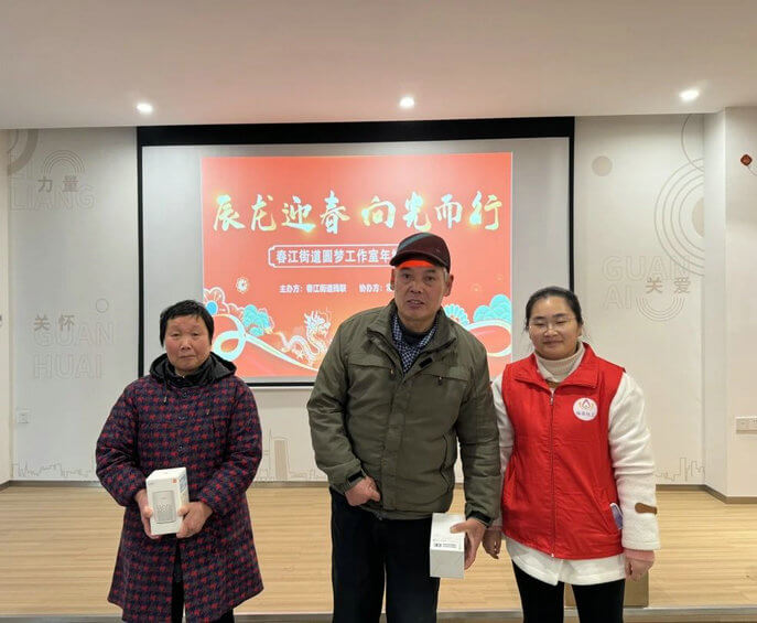 春江街道圆梦工作室根据每个人的特点评选出“工作能手”、“康复之星”、“励志之星”“微笑之星”等6位先进代表,并为他们送上新年慰问品与祝福,祝愿他们在新的一年里继续自立自强,奋斗不息。
