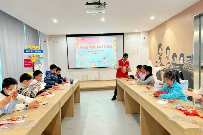 花灯传递着千年中式美学,衬托着元宵佳节的人间美好。社工向居民小朋友们讲解花灯的制作方法和注意事项。孩子们认真聆听,按照社工的示范,一步步拼装、穿绳、安灯,很快,一盏盏造型精巧、色彩鲜艳的龙灯就完成了。