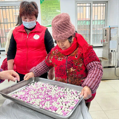 传统美食元宵,蕴含暖心香甜,寓意和美团圆。志愿者们卷起袖子,笑容满面的和起了面。社工带领居民们一起搓元宵,大家齐动手共欢乐,不一会儿,在热火朝天的氛围中,一个个白白胖胖的元宵很快摆满了盘子。大家分批煮元宵,伴随着阵阵浓香,一碗碗热腾腾的元宵出锅了。香甜的味道让美味苏醒,让情感升温,让仪式完整。大家共同品味传统美食的味道,感受相聚一堂的温暖。此刻,月圆满,人团圆。