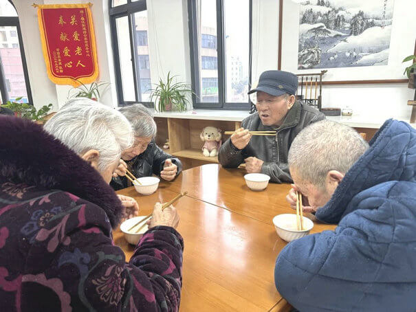 在传统美好的节日里,工作人员和大家一起和一个圆圆的面团,搓出一个个甜蜜的元宵,不一会一碗热气腾腾的美味元宵就出锅咯。元宵节,老人们围聚在一起品尝着甜美的元宵,美好的滋味甜在口中,美好的感受荡漾在心中!