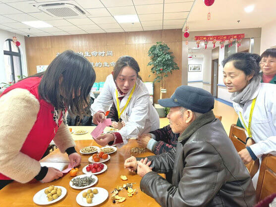 “身上滑腻腻,喜欢钻河底。是什么动物啊?”老人们立马抢答道“青蛙!不对不对,是泥鳅!”多种充满趣味性、知识性的谜题,让老人们纷纷参与其中,趣味纷呈,欢声笑语。