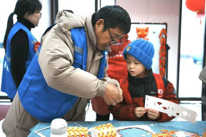 花灯传递着千年中式美学,衬托着元宵佳节的人间美好。社工向居民小朋友们讲解花灯的制作方法和注意事项。孩子们认真聆听,按照社工的示范,一步步拼装、穿绳、安灯,很快,一盏盏造型精巧、色彩鲜艳的龙灯就完成了。