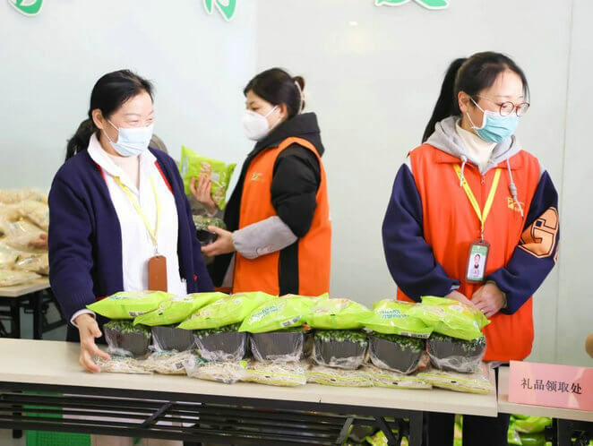 活动现场一片欢乐和谐的景象。精心包装的黄豆芽、绿豆芽和黑豆苗摆放得整整齐齐,等待着老年朋友们的领取。这些芽苗菜都是经过严格筛选和精心培育的,绿色健康,营养丰富,每一位前来领取豆芽的老年朋友都笑容满面,他们感受到了关爱,也体会到了生活的美好和幸福。