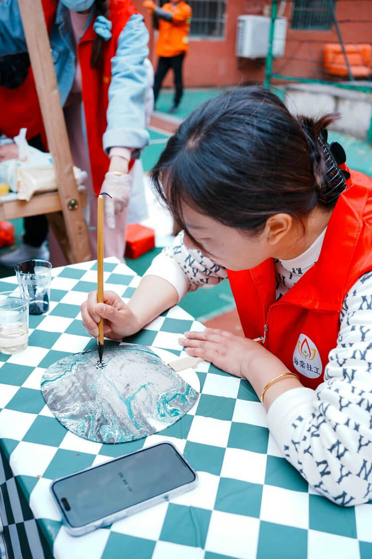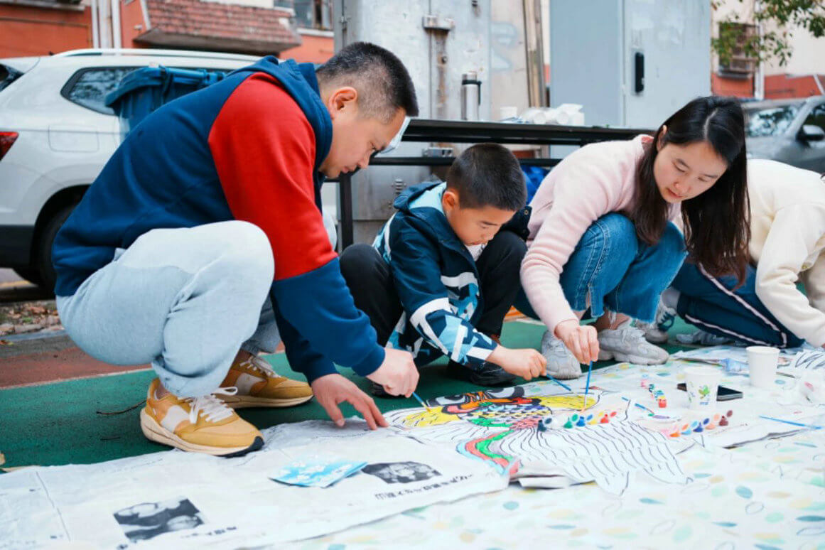 社区老年艺术队为群众献上精彩的演出,亲子家庭们一起完成了彩绘风筝的任务,欢声笑语洋溢在每个人的心间。