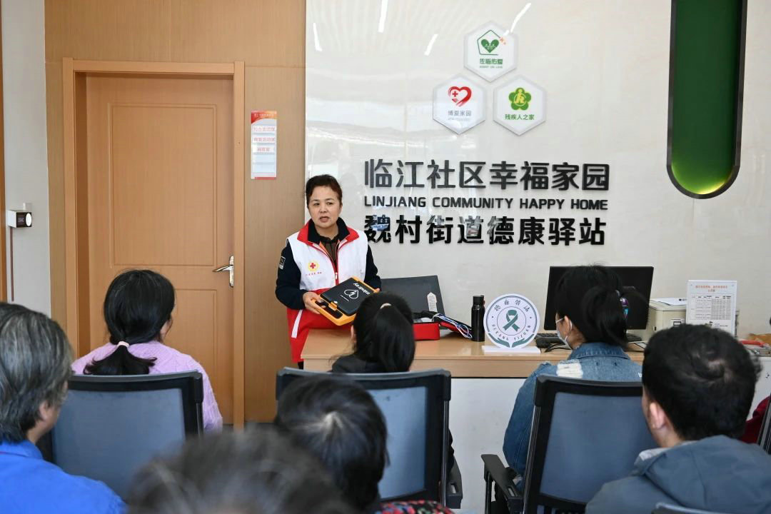 为普及应急救护知识,提高康复员自救互救能力,4月18日,海棠社工特邀江苏省常州技师学院医药康养学院副院长、红十字应急救护培训师、常州市优秀红十字志愿者孙永霞老师在魏村德康驿站开展“急”刻护航 练“救”本领—应急救护培训。康复员认真听讲学习掌握急救基本知识,并积极互动参与心肺复苏和海姆立克急救法模拟演练,让身边的“猝不及防”化为“防可胜防”。
