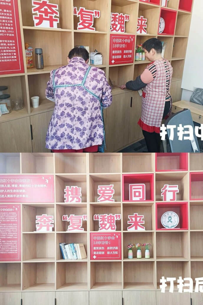 为帮助康复员提升生活技能,4月23日,魏村德康驿站开展我的生活我做主之驿站大扫除。社工仔细介绍清洁工具使用方法,同时结合康复员个体情况进行卫生任务分解。在清洁过程中,大家确保每个角落都被清洁到位,同时保持积极的心态享受这个过程。