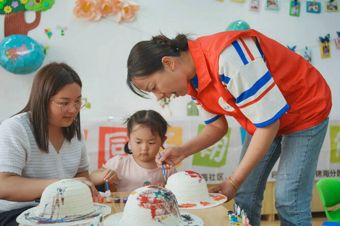 孩子们在家人的陪伴下、老师的带领下参加了“梦想彩虹伞”“音乐律动”等互动体验,通过感受色彩的变化、空间的移动和律动的节奏,激发孩子们的想象力和探索欲。活动现场还提供了草帽、颜料以及各种装饰材料,孩子们在家长的帮助下,发挥想象力与创造力,创作出独一无二的个性草帽。活动现场还为大家准备了蛋糕,大家互道真挚的祝福,分享美味的蛋糕,共同庆祝六一儿童节,现场洋溢着温暖的幸福与笑容。
