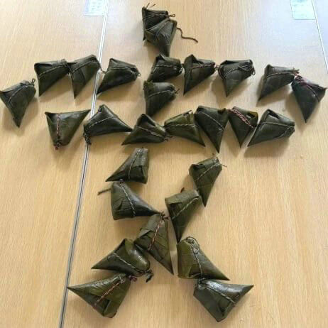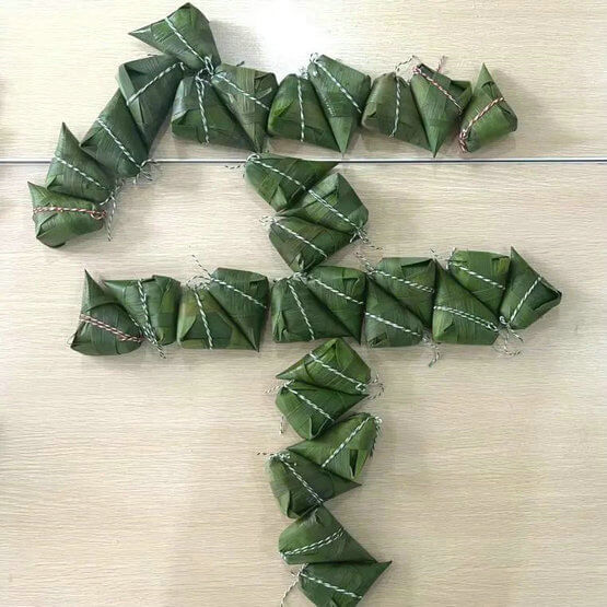 一片粽叶、一缕清香、一根细绳,从历史深处深情回望是传承千年的味道与祝福。活动现场,社工们提前准备好粽叶、糯米、粽线等材料,等老人们一到便开启了火热的包粽子环节。捋粽叶、做漏斗状、填糯米、添红枣、压紧实、扎红线,手指翻飞之间一颗颗被粽叶包裹着的绿油油的粽子被制作出来。蒸熟之后甜香四溢,老人们围坐桌旁,吃粽子、话趣事、忆往昔,欢声笑语、其乐融融。
