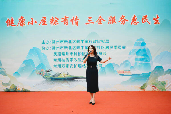 奔南社区党总支书记路亚南,市政协委员、民建钟楼基层委副主委、枝秀集团董事长王秀,常州市家庭服务业协会党支部书记、常务副会长、枝秀集团总经理吴逸新,新北区政协委员、枝秀集团常务副总王芳等领导出席了本次活动。