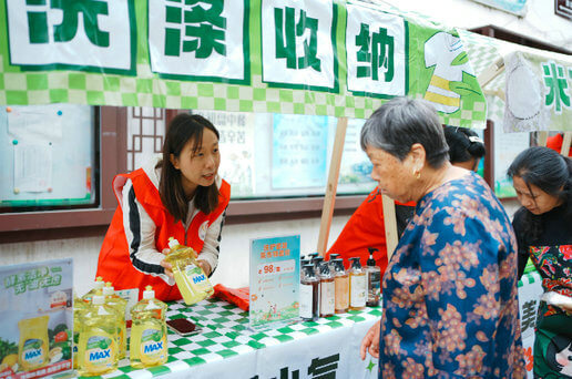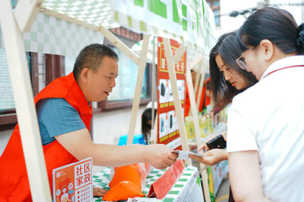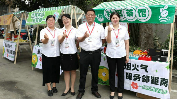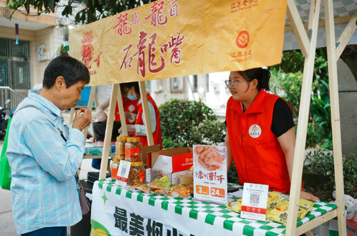 签约仪式的外场,“一刻钟便民生活节”社区公益集市正如火如荼地进行中。在工作人员的陪同下,奔牛镇各级领导们移步现场参观指导,并对“一刻钟便民生活节”社区集市这一囊括了优质资源、优惠商品、优效服务,贴近百姓需求的“一站式”服务平台表示了高度认可与赞扬。集市现场热闹非凡,居民们或驻足观看,或参与体验,大家的脸上都洋溢着幸福的笑容。