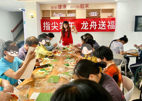 活动伊始,社工向康复员们简单介绍了端午节风俗、龙舟寓意及制作龙舟的基本方法和技巧。当社工将艾草龙舟的材料摆上桌时,康复员们好奇地围了过来,大家在社工的指导下发挥创意,自由制作。在拼接、组装、固定过程中,康复员们互相交流,互帮互助,共同感受端午传统文化魅力。看着最初不起眼的制作材料在自己手中初具雏形,最终变成一艘艘创意满满、艾香浓郁的龙舟,康复员们十分开心,成就感油然而生。制作完成后,社工为康复员们献上了节日的祝福,一一分发了端午粽子礼包。
