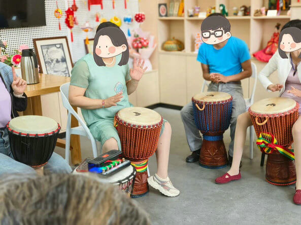 康复员们跟随着老师的律动摇摆着,拍打着。朗朗上口的歌词搭配着动感十足的鼓声,歌声、笑声、鼓声、掌声交织在一起形成了动人的交响乐,每个人脸上都洋溢着微笑。本次活动增进了康复员之间的友谊,提升了大家对音乐的欣赏和团队协作能力,为康复员融入社会提供助力。